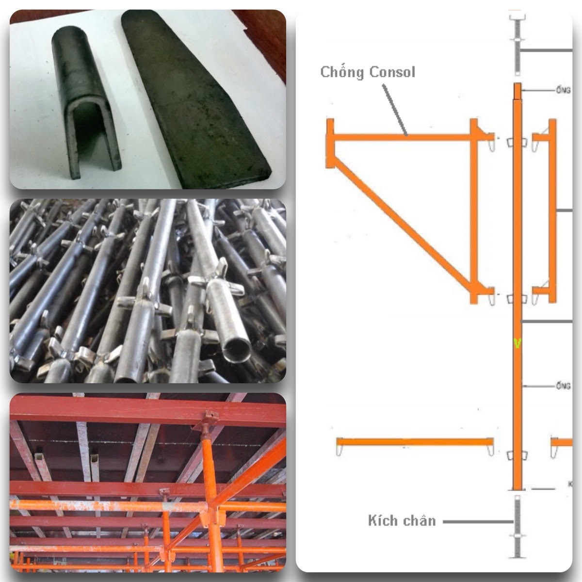 Hệ giàn giáo nêm được cấu tạo bởi các bộ phận cơ bản như: cột chống đứng, thanh giằng, chống consol, kích chân, kích u,….